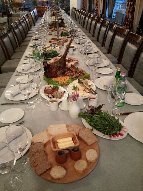 We were in a restaurant named "Old Walls". They server traditional Georgian cuisine. There was also a table with a choir of Georgian men, singing local folk songs.